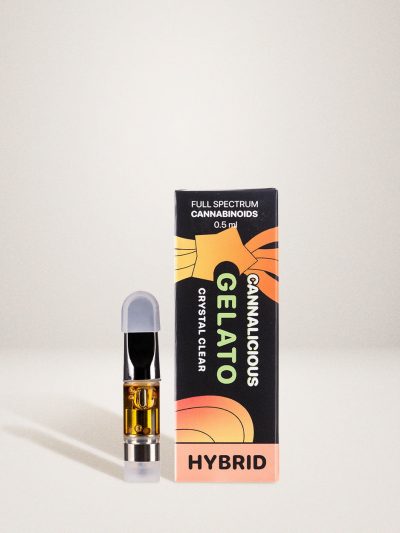 Feel alert, yet relaxed with our Cannalicious Gelato Hybrid full-spectrum cannabinoids vape cartridge. This blend of THC distillate and aromatic terpenes offers the best of both worlds, combining the soothing effects of Indica with the uplifting properties of Sativa. Gelato is a renowned cannabis cross-variety, with a rich tapestry of flavours and well-balanced effects. This 0.5ml cartridge contains: – High-quality THC distillate – Full-spectrum cannabinoids – Natural terpenes Effects: – Balanced mind and body relaxation – Mild elevated experience – Enhanced creativity and focus – Potential pain relief Directions for best results: It’s important not to overconsume, as THC distillate is potent. Start with a low dose of one or two small puffs and wait 10-15 minutes to assess the effects. For optimal flavour and effect, use with low voltage and ensure the air holes in the cartridge are fully open for a smooth draw. Note: This product contains the vape cartridge only and does not include a vape battery pen. It pairs well with the Cannalicious Vape Battery Pen or other compatible battery.